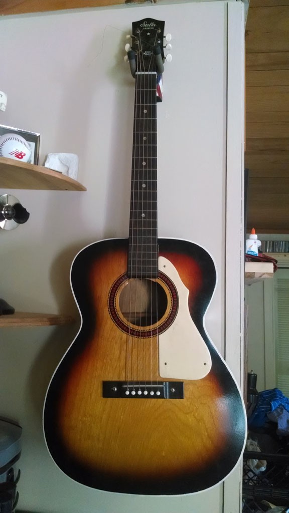 My early 1970’s Harmony Stella acoustic guitar. Just as free as my Toyota and also needing work. All fixed and playing well now.